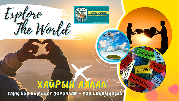 Манай ганц бие ноёд, хатагтай нарын өндөр хүлээлттэй байдаг Хайраа олох ХАЙРЫН АЯЛАЛ маань манай аяллууд дундаас бас нэг өөр содон өнгө төрхтэй байдаг аяллын нэг билээ. Зөвхөн ганц бие хүмүүс аялна. Хайраа олно.